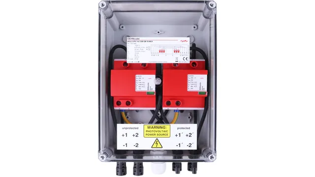 Scatola di derivazione del generatore DCU 2 YPV 1+2 1200 1M 1S MC4 con grado di protezione IP65. Secondo la norma DIN EN IEC 61439-2 per la protezione di un ingresso MPP e una stringa.