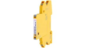 Platzsparender, modularer Überspannungs-Ableiter in 6 mm Baubreite und Push-in-Anschlusstechnik mit Statusanzeige zum Schutz von 1 Doppelader eigensicherer Messkreise und Bussysteme. Erfüllt Anforderungen nach FISCO. Isolationsfestigkeit >500 V Ader-Erde. Mit Signaltrennung für Wartungszwecke.