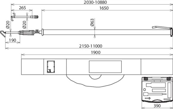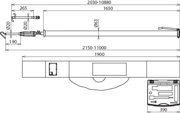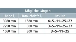| Gesamtlänge (lG max / IG min ) | 11000 / 2150 mm |