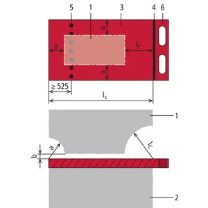 Die Begrenzungsmarkierung ist eine durchgezogene Linie und gilt als Begrenzung der Handhabe zum Schutzteil. Diese Markierung darf beim Einschieben der Platte nicht übergriffen werden und muss, wenn die Schutzplatte eingeschoben ist, mindestens 525 mm von unter Spannung stehenden Teilen entfernt sein.