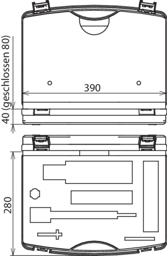 Abmessung 390 x 280 x 80 mm