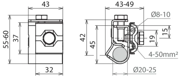 | Anschluss Rd | 1-2 Leiter Rd Ø6-8 mm / 1x Ø10 mm |