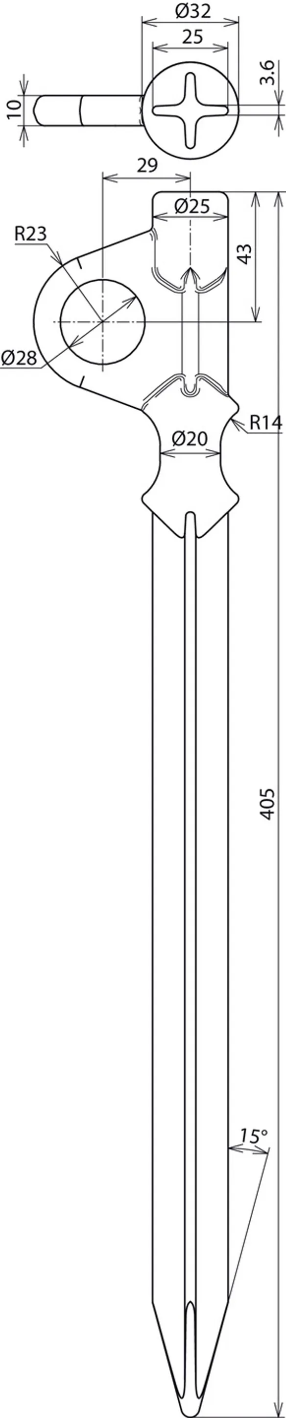 Ankerpfahl TG/tZn Länge 405mm Ankerpfahl zum Abspannen von Stangenteilen und Lattenscheren beim Überbau von Fernmeldekabeln und dgl.