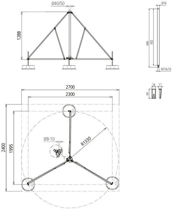 | Platzbedarf Stativ | 2300 x 1995 mm |