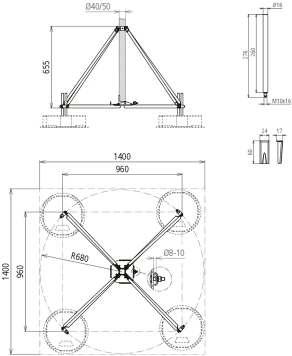 | Anzahl Betonsockel | 3-12 Stück à 17 kg |