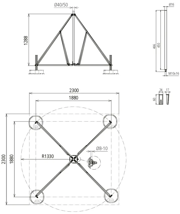 | Platzbedarf Stativ | 1880 x 1880 mm |