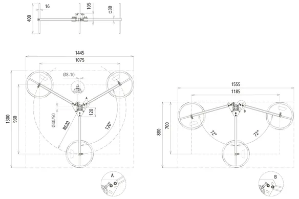 | Platzbedarf Stativ | 960 x 960 mm |