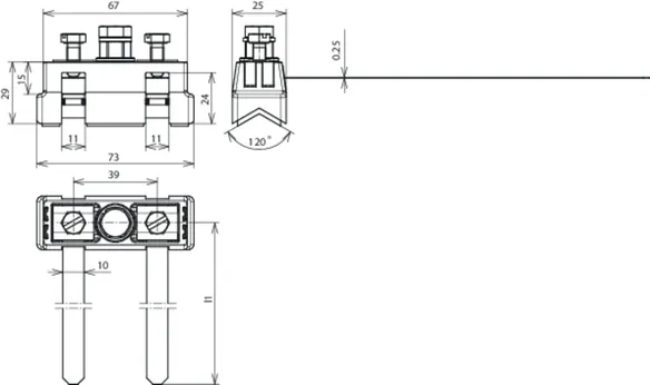 | Blitzstoßstrom (10/350 µs) Cu Ø6-12 mm (Iimp ) | 10 kA |